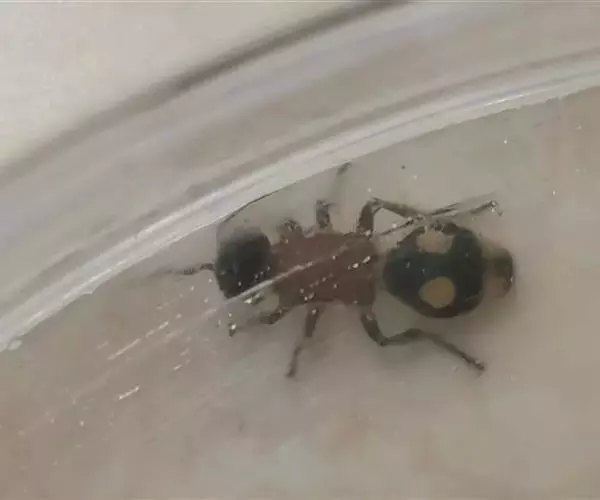蚁蜂跟蚂蚁很像,其英文velvet ant直译过来便是“天鹅绒蚂蚁”。雌性蚁蜂的外形就像覆盖着密集绒毛的大型蚂蚁,绒毛的颜色各异,有黄、橙、红、白、黑等多种颜色。在大多数蚁蜂物种中,雄性往往其貌不扬。它们与长有鲜艳绒毛的雌性差别很大。
