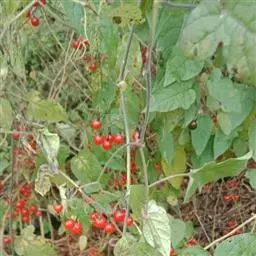 龙葵,茄科茄属一年生草本植物,茎近无毛或被微柔毛,叶互生,卵形或卵状椭圆形,叶常无毛;花小且下垂,…