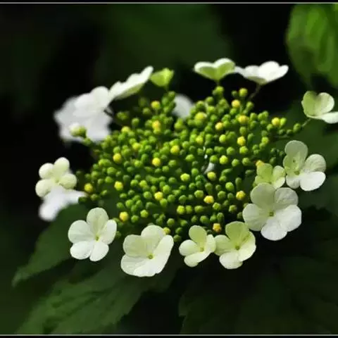绣球荚蒾,五福花科荚蒾属落叶灌木,高可达3米,树冠球形;幼枝有垢屑状星状毛,老枝粗壮,具皮孔,…