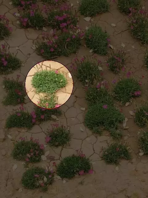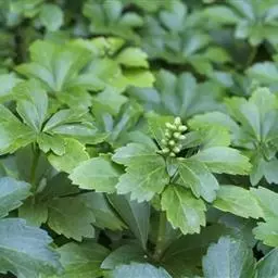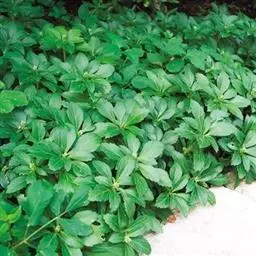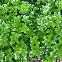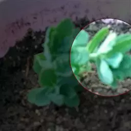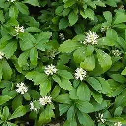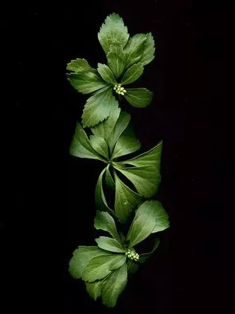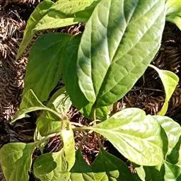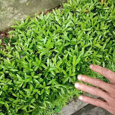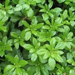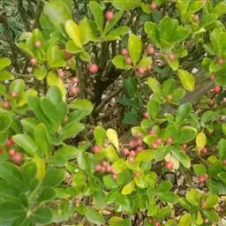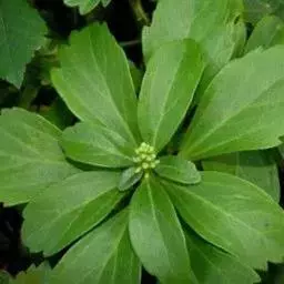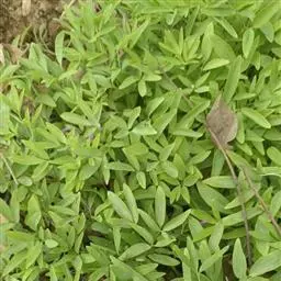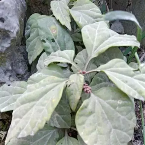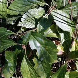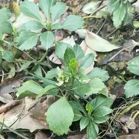 板凳果常绿亚灌木,铺地生长。株高20cm,冠径25cm。每个茎顶端生3~6片叶,叶卵形,边缘有锯齿,…