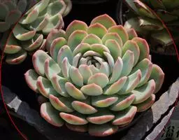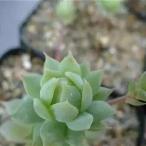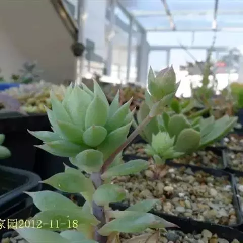 景天科风车草属的多肉植物,原产于墨西哥。株形和风车草属胧月极为相似。花瓣被蜡,叶排成延长的莲座状被…