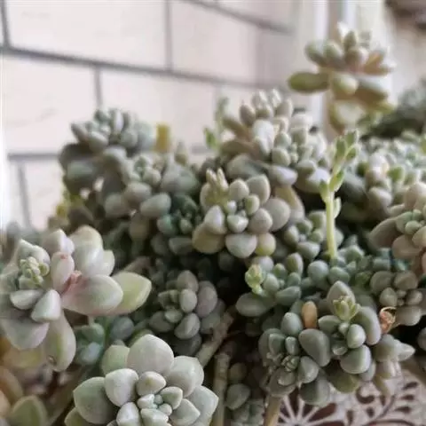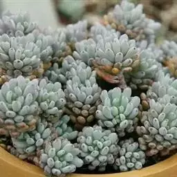 蓝豆是景天科、风车草属的多年生植物,多肉植物。植株叶片覆白粉,呈淡蓝色,…