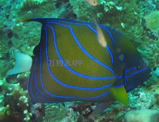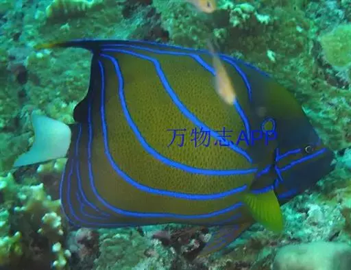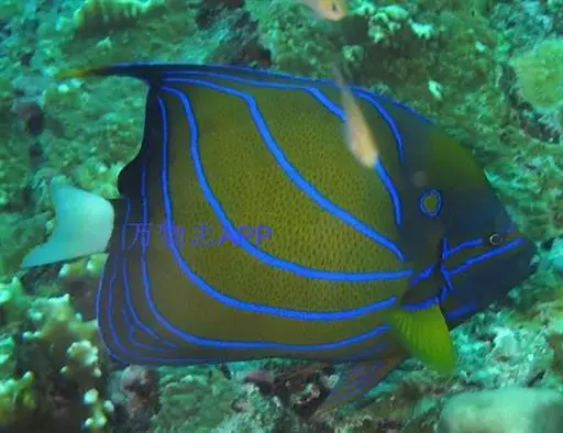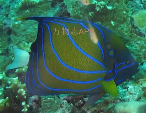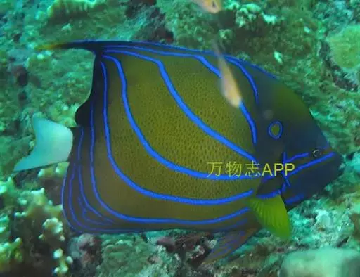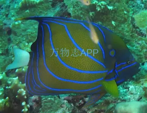 环纹刺盖鱼或称肩环刺盖鱼,别称蓝环神仙或白尾蓝纹神仙,成鱼尾鳍白色,肩部有一个蓝色圆环,体侧则有数条蓝色弧线,非常美丽,是著名的海水观赏鱼类。主要分布于印度太平洋海区,多见于印度尼西亚,活动于大型珊瑚礁区,觅食无脊椎动物及各类附着于礁石的有机物如海绵、珊瑚虫等。
