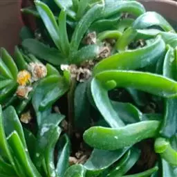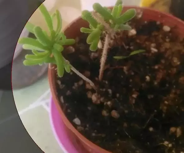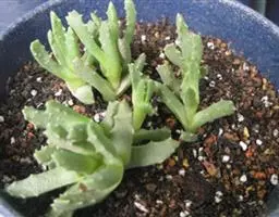枝干番杏种子发芽后,由于幼苗比较脆弱,所以管理要十分细致。在该种的发芽期乃至苗期,都应该切忌过于潮湿,以防植株发生腐烂。浇水应该以土壤是否干燥为标准,不能直接浇水,避免涝死,而应该采用浸灌的方式,将花盆底部浸入浅水中,从盆底的小孔慢慢润湿盆土,让水分缓慢渗透进介质。有的时候枝干番杏小苗的根部会生长在土的表面,这时需轻轻地将苗根埋进土壤。