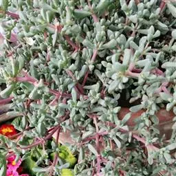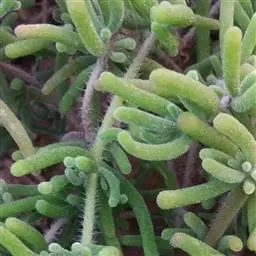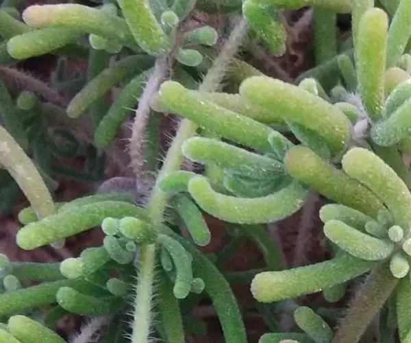 多年生肉质草本,匍伏生长或密集丛生成小灌木状;株高10-25厘米,株幅15-27厘米;老茎浅褐色,嫩茎绿色,较细,均密布极细柔软绒毛。