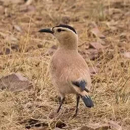 黑尾地鸦:体羽沙褐色,额、头顶以至后颈呈发金属紫蓝辉的黑色。头侧乳黄色。整个背面,包括两肩葡萄褐色。…