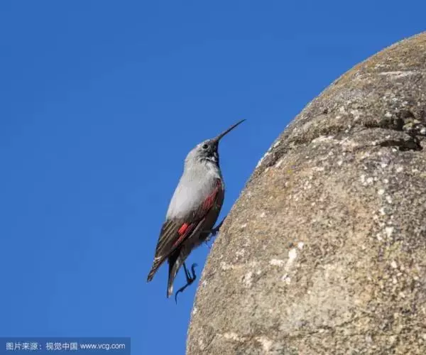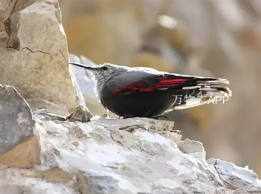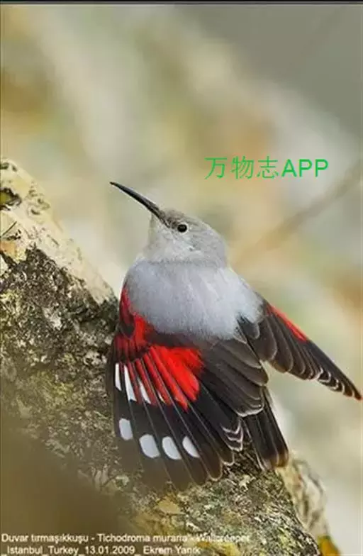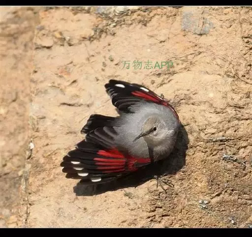 红翅旋壁雀(学名:Tichodroma muraria):体重15-23克,体长120-178毫米。是一种体型略小的鸟类。尾短而嘴长,翼具醒目的绯红色斑纹。飞羽黑色,外侧尾羽羽端白色显著,初级飞羽两排白色点斑飞行时成带状。繁殖期雄鸟脸及喉黑色,雌鸟黑色较少。非繁殖期成鸟喉偏白,头顶及脸颊沾褐。虹膜深褐色,嘴脚黑色。