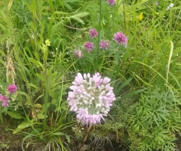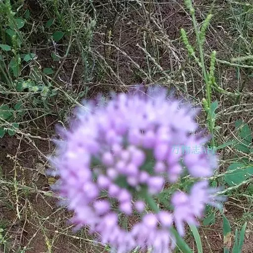 多年生草本。鳞茎常单生,卵状至狭卵状,或卵状柱形,粗0.7-2(-2.5)厘米;鳞茎外皮污黑色或黑褐色,纸质,先端常破裂成纤维状,内皮有带淡红色,膜质。叶三棱状条形,中空或基部中空,背面具1纵棱,呈龙骨状隆起,短于或略长于花葶,宽(1.5-)2-5毫米。花葶中生,圆柱状,中空,高30-70厘米,1/4-1/2被疏离的叶鞘;总苞单侧开裂或2裂,宿存;伞形花序球状,具多而极密集的花;小花梗近等长,比花被片长2-4倍,基部具小苞片;花红色至紫色;花被片椭圆形至卵状椭圆形,先端钝圆,长4-6毫米,宽2-3.5毫米,外轮舟状,较短;花丝等长,约为花被片长的1.5倍,锥形,无齿,仅基部合生并与花被片贴生;子房倒卵状球形,腹缝线基部具有帘的凹陷蜜穴,花柱伸出花被外。花、果期8-10月。