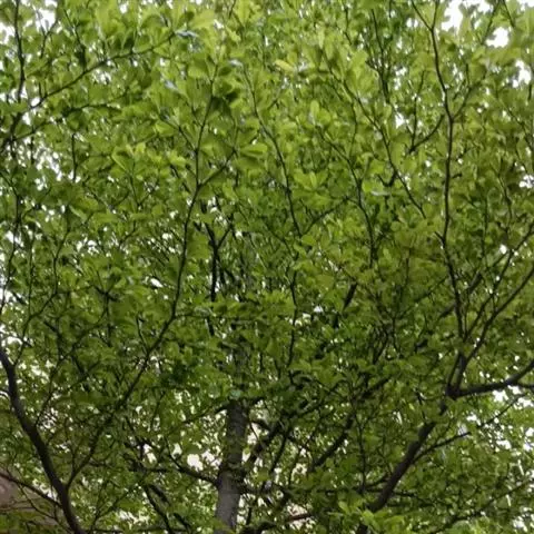乔木,高5-15米,树皮暗灰色,几平滑,纤维坚韧;小枝圆柱形,具绉纹,幼时被疏柔毛,后逐渐脱落,无毛或近无毛。