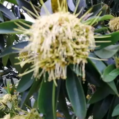 花芳香,黄绿色,多朵,组成伞形花序;花梗长5-6毫米,密被黄灰色短柔毛;萼筒浅钟状,长5-6毫米,两面均密被短柔毛,5裂,裂片卵形,长4-5毫米,先端圆钝或急尖,两面被短柔毛;花瓣10,鳞片状,着生于花萼筒喉部,密被毛;雄蕊10,排成1轮,花丝长约1毫米,花药长圆形,长约4毫米;子房卵形,密被灰白色毛,2室,每室1胚珠,花柱极短或无,柱头头状。