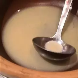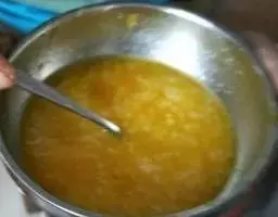 烧糖粥要将米和糖水比例一次加准,不能中间再加水的;然后用硬柴旺火烧,再熄火以炭化硬柴焖。其中还要几次旺、几次熄,人常守在行灶边,用“吹火筒”煽起旺火,作场间里经常是烟雾腾腾的。总的要求是米粒要开花,但不黏,要爽口,锅里不能上清下沉,粥下沉了就要干,干了就要结底,有糊味。焐酥豆却另有一套工序。人们以为是用赤豆烧成的,误称赤豆糖粥。其实是用上好的蚕豆浸胖后加碱、加水,以火功焐烂,甚至连壳也要烂。这里有个秘诀,过去秦家是不传人的,也没有人做这行档,而且也不愿做这行档,不妨加以公开。焐酥豆即使烧到上述程度,它还不会起“沙”,仅是一锅豆汤而已。秘密是另冲一大缸热的红糖水,冲入沸腾的焐酥豆汤中,加以搅拌,立即起“沙”而成焐酥豆。用碱烧蚕豆,照营养学来讲是破坏各类维他命的;好在人们吃焐酥豆仅一瓢而已,维他命还可从各类蔬菜、食品中吸取。 [1-2]