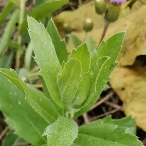 荷兰菊为多年生草本。株高50—100cm。叶片椭圆形,头状花序,单生,蓝色。荷兰菊为菊科多年生宿根草本花卉,有地下走茎,茎丛生、多分枝,叶呈线状披针形,光滑,幼嫩时微呈紫色,在枝顶形成伞状花序,花色蓝紫或玫红,花期10月。