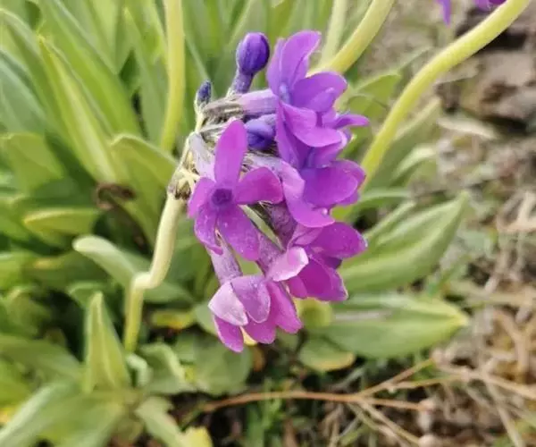 紫花雪山报春 多年生草本。根状茎短,具多数长根。