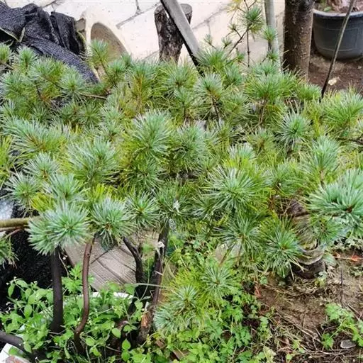 日本五针松为松科常绿乔木,原产日本,分布在本州中部、北海道、九州、四国海拔1500m的山地。我国的长江流域各城市、青岛、北京等地引种栽培。