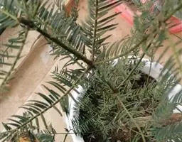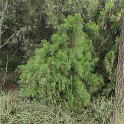 于5-6月春夏之交进行。从4年以上树龄的母株上,按长巧厘米剪下插穗,2年生幼枝作插穗成活率较高。为促进早生根,可将插穗基部浸入100ppm的α一茶乙酸或100ppm吲哚乙酸溶液中3小时后,插人与育苗畦相同规格的露地插床上。或用蛙石加风化砂(1:1)作为基质的插床上扦插,插前剪去插穗下部的小枝和针叶。插深3-5厘米,株行距8×10厘米。插后浇透水,插床用薄膜拱罩保湿,每日喷水2次。两周后每日喷水一次。用遮荫网遮荫,插后一个半月发根。发根后可在育苗畦上移栽一次,行距30厘米,株距10-15厘米。经常浇水保持土壤湿润,松土除草作到畦面无杂草,可适当追施无机或有机肥料,以有机肥料为好。