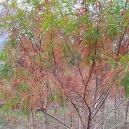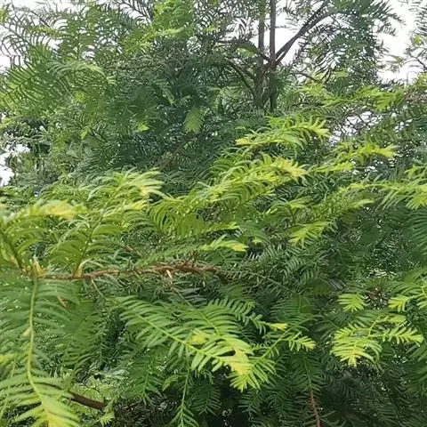 乔木,高达20米,胸径达1米;树皮红褐色,有浅裂纹;枝条平展或斜上直立,密生;小枝基部有宿存芽鳞,一年生枝绿色,秋后呈淡红褐色,二、三年生枝呈红褐色或黄褐色;冬芽淡黄褐色,芽鳞先端渐尖,背面有纵脊。