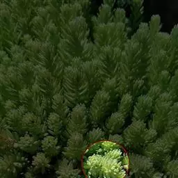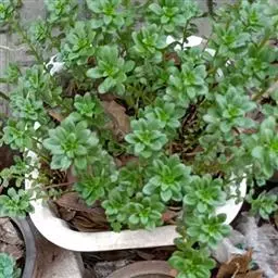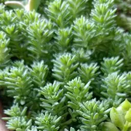 薄雪万年草别名矶小松,景天科景天属多年生草本植物,其细小的蓝绿色棒状叶片环绕生长于茎端,…