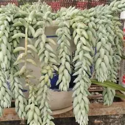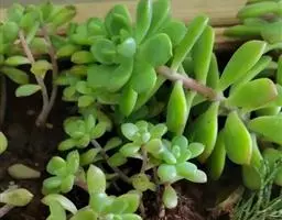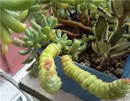 玉米石是景天科、景天属植物。多年生草本多浆植物。植株低矮丛生,多分枝。叶膨大成圆筒形、卵形或近小球形,…