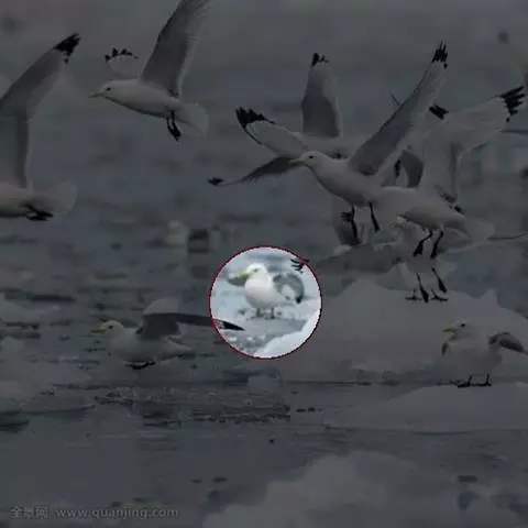 灰翅鸥,夏羽头、颈、腰、尾白色;肩、背和翅上覆羽鸽灰色。冬羽和夏羽相似,但头和颈具淡褐色纵纹,有时…