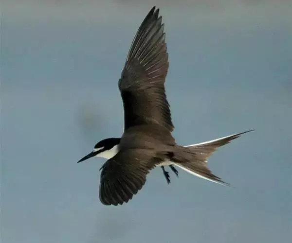 褐翅燕鸥(学名:Onychoprion anaethetus):中型水鸟,体长360-370毫米。与乌燕鸥相似,体型稍小。额白,连接白色眉纹,延伸至眼后方;头顶和枕及后颈黑色,上体黑褐色,双翅颜色更深浓,尾呈深叉状;穿眼纹黑色,在后方与头顶黑色相连,颈侧及下体白色;飞羽腹面黑褐色;飞行时翅的前缘及外侧尾羽白色;虹膜暗褐色,嘴、脚和爪黑色,幼鸟脚呈肉褐色。