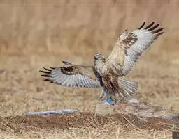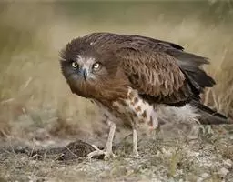 白肩雕:又名御雕,是大型猛禽。体长73-84厘米。体羽黑褐色,头和颈较淡,肩部有明显的白斑,在黑褐…
