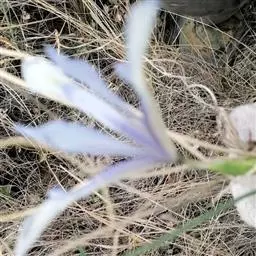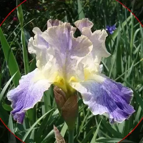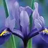 花茎高5-7厘米,中下部有1-2枚鞘状的茎生叶;苞片2枚,草质,绿色,狭披针形,长3.5-5.5厘米,宽约6 毫米,顶端渐尖,内包含有1朵花;花淡蓝紫色,直径3.5-4厘米;花梗长0.6-1厘米;花被管长2.5-3 (5) 厘米,外花被裂片倒卵形,长约2.5厘米,宽1-1.2厘米,盛开时上部平展,有马蹄形的斑纹,爪部楔形,中脉上有黄色的鸡冠状附属物,表面平坦似毡绒状,内花被裂片倒披针形,长2.2-2.5厘米,宽约7毫米,直立;雄蕊长约1厘米,花丝及花药皆为白色;花柱分枝淡蓝紫色,长约1.8厘米,宽约4毫米,顶端裂片长三角形,外缘有不明显的疏齿,子房绿色,圆柱形,长4-5毫米。 小鸢尾的花瓣