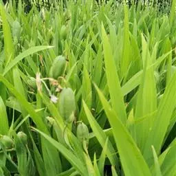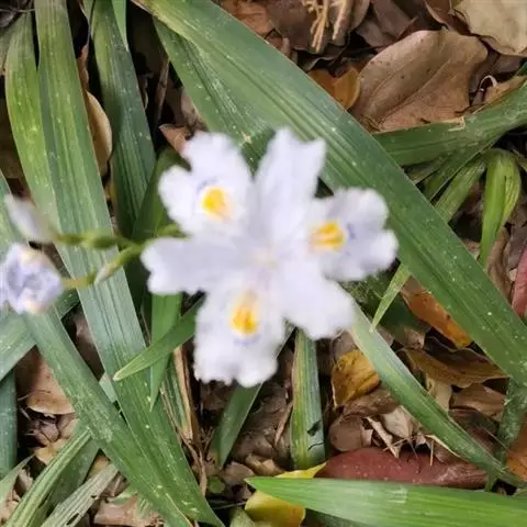 亮叶鸢尾为常绿多年生草本植物。叶面光滑、亮绿色,花茎扁平叶状。原产于巴西。