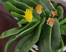 照波,番杏科多肉植物、此种生长较快,栽培容易,细长的浓绿色叶3厘米左右,开黄色花。…