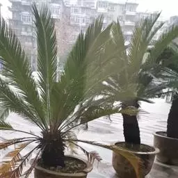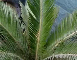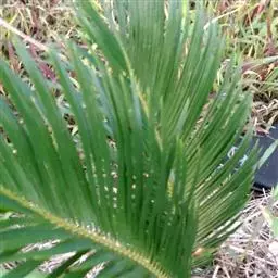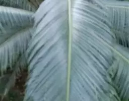 苏铁炭疽病:又名叶枯病,主要为害新抽幼嫩小羽叶片。羽叶受害症状因不同品种而异:或病斑中间深灰色,边缘呈深褐色;或病部变褐色,纵卷成一条线,干枯垂直;或病斑为长椭圆形,土黄褐色,后期黑褐色,病健交界明显(一般以叶脉为界);有的病斑中心红褐色,半圆形、椭圆形或不规则形,外有黄晕,病健交界不清,很难见到小黑点。严重时也可引起羽叶成段枯死。