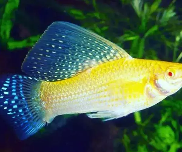 茉莉花鳉(学名:Poecilia latipinna)是花鳉科、花鳉属鱼类。体延长,前部略呈楔状,后部侧扁。雌鱼的腹部膨大而圆突。头部中大,吻短。眼大,侧位;眼间区及吻背平直且较宽。口斜裂,前部平直,末端未达眼前部的下方。体被有中大型的圆鳞;纵列鳞25-29。背鳍的基底长,鳍条数12-16,雄鱼的鳍较高,如立帆状,约为雌鱼的2倍,末端可超过尾鳍的基部;雄鱼的臀鳍特化成交接器,雌鱼正常,鳍条数7-9;尾鳍呈圆截形。体色变异大,一般体背呈暗橄榄绿,体侧淡黄色、绿色或褐色,腹部银白。体侧具有7-9列黑褐色或黄褐色的矩形点状纵线;帆状背鳍的下半部具有4-6列蠕纹状的纵线,中部则具短横纹或断裂成点状横纹,上半部则为点状纹。尾鳍基部或前半部有深色细点;其余各鳍呈灰白略透明。