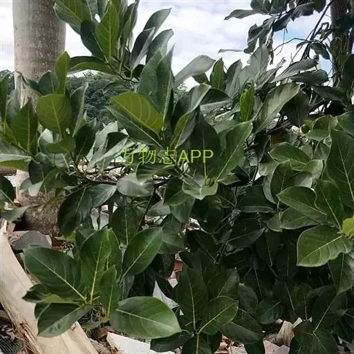 常绿乔木,树高10-20米,胸径达30-50厘米;老树常有板状根;树皮厚,黑褐色;小枝粗2-6毫米,具纵绉纹至平滑,无毛;托叶抱茎环状,遗痕明显。叶革质,螺旋状排列,椭圆形或倒卵形,长7-15厘米或更长,宽3-7厘米,先端钝或渐尖,基部楔形,成熟之叶全缘,或在幼树和萌发枝上的叶常分裂,表面墨绿色,干后浅绿或淡褐色,无毛,有光泽,背面浅绿色,略粗糙,叶肉细胞具长臂,组织中有球形或椭圆形树脂细胞,侧脉羽状,每边6-8条,中脉在背面显著凸起;叶柄长1-3厘米;托叶抱茎,卵形,长1.5-8厘米,外面被贴伏柔毛或无毛,脱落。