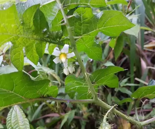 具刺杂草,植株及果含龙葵碱,误食后可导致人畜中毒。