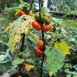 珊瑚豆,是茄科茄属的常绿灌木。叶双生,大小不等,椭圆状披针形,先端钝至短尖,叶面无毛,叶背有簇茸毛,…