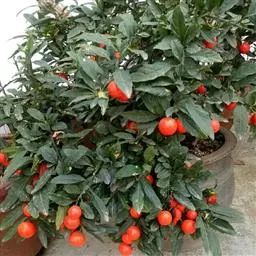 珊瑚樱是茄科茄属植物。株高达2米;植株无毛;叶窄长圆形或披针形,长1-6厘米,基部窄楔形下延,…