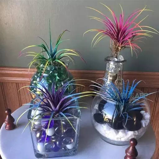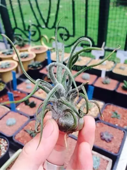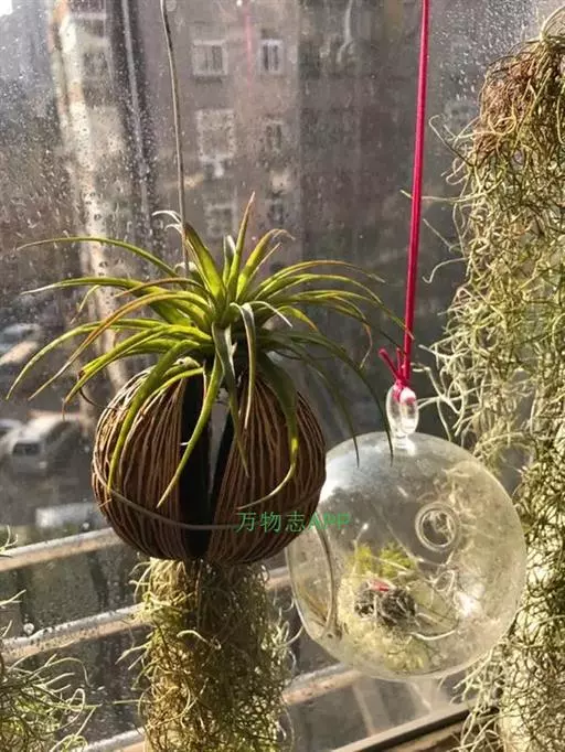 空气凤梨原产于中,南美洲高原,能耐5°C的低温,适宜生长温度为15°C-25°C,高于25度时要加强通风和提高湿度。