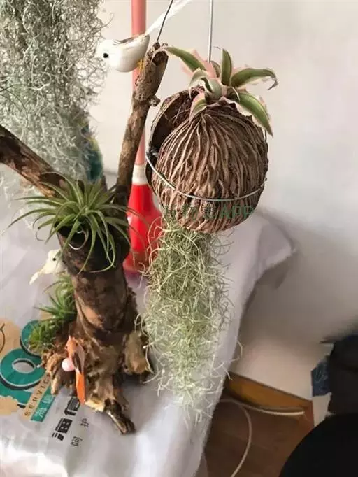 空气凤梨的栽培容器主要有贝壳,石头,枯木,树蕨板,藤篮等,固定可以用铁丝,绳索绑扎,也可以用万能胶、热溶胶将其粘贴在容器上,或是用吊挂方式来栽培,用铜丝或绳索将其绑扎后吊在空中。