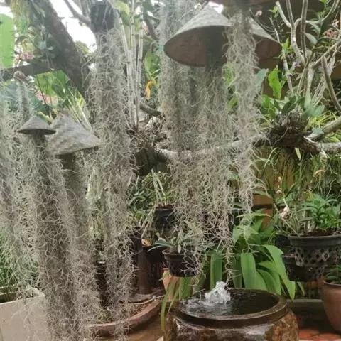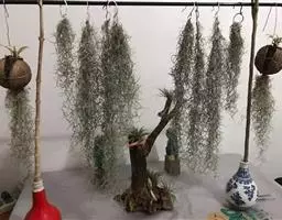 空气凤梨可黏附于枯木上,岩石上,或放置于贝壳上,盆器上,只要根部不积水均能生长。不少外国室内设计杂志,都有空气凤梨作为室内植物点缀家居,十分时尚。更多人大量种植空气凤梨,就用金属线或鱼线挂起来,造型生动奇特。空气凤梨的根部以附着植株于固定处的功能为主,所以即使没有根部亦可生存,折断或弄伤的枝干也能独立存活一段日子,若环境合适也能长出子株延命。