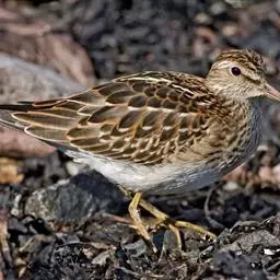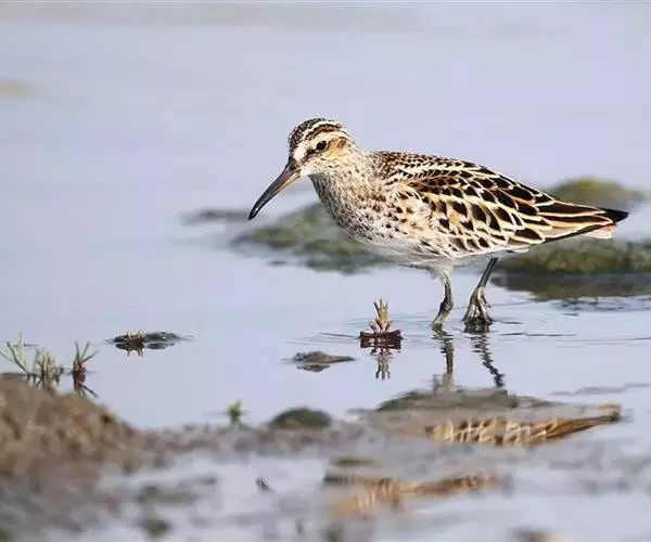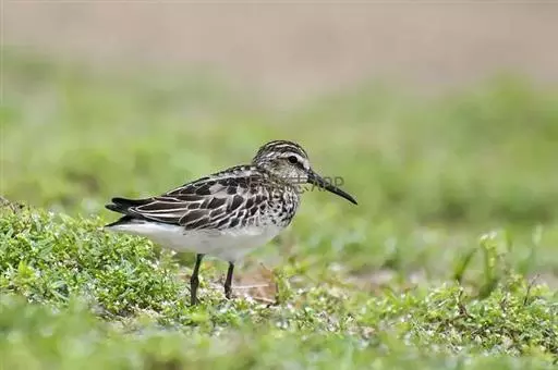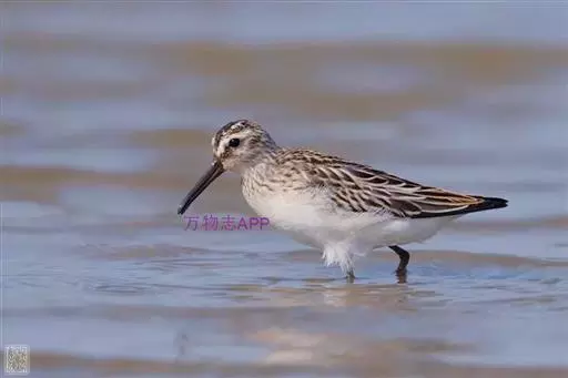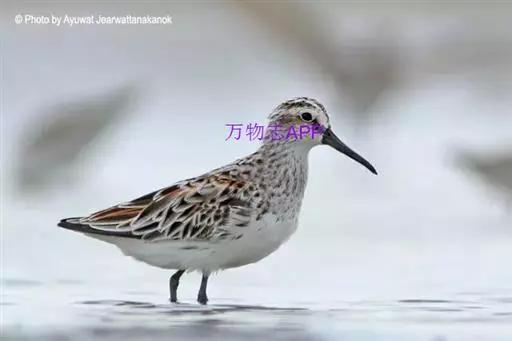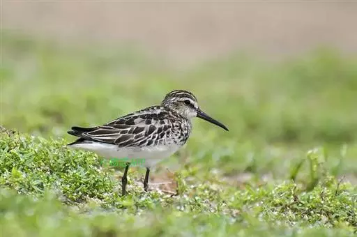 阔嘴鹬是涉禽,体长17厘米。特征为翼角常具明显的黑色块斑并具双眉纹。与黑腹滨鹬平滑下弯的嘴相比,…