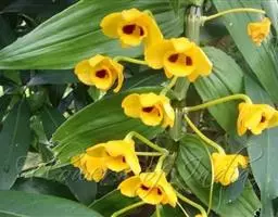 喉红石斛:附生。茎丛生,直立,粗短,近棒状纺锤体。叶2-4枚,生于茎顶。总状花序顶生,花序轴长5-…