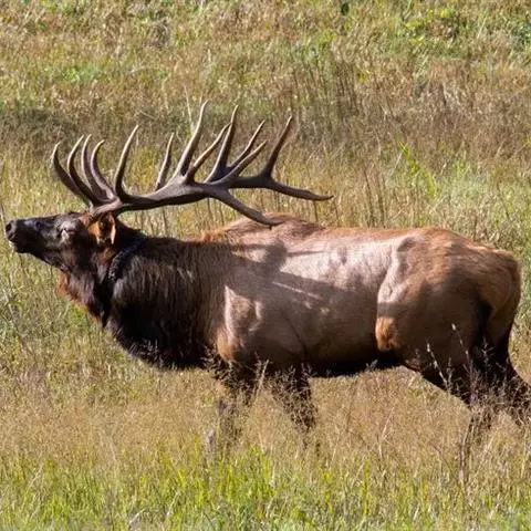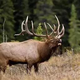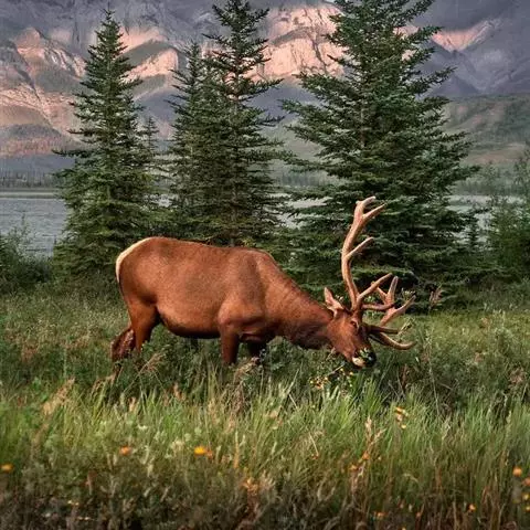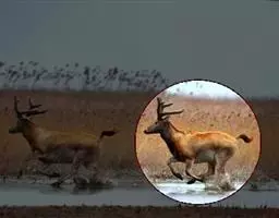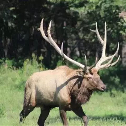 白唇鹿(学名:Cervus albirostris):体形高大,体长约2米,通体被毛十分厚密,毛粗硬且无绒毛,毛色在冬夏有差别。鼻端两侧、下唇记下颌白色。在臀部尾巴周围有黄色斑块,因此当地人也称它为“黄臀鹿”。雄性白唇鹿具角,角的主干扁平,故也称其“扁角鹿”。
