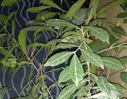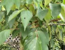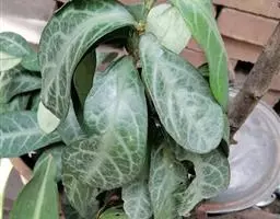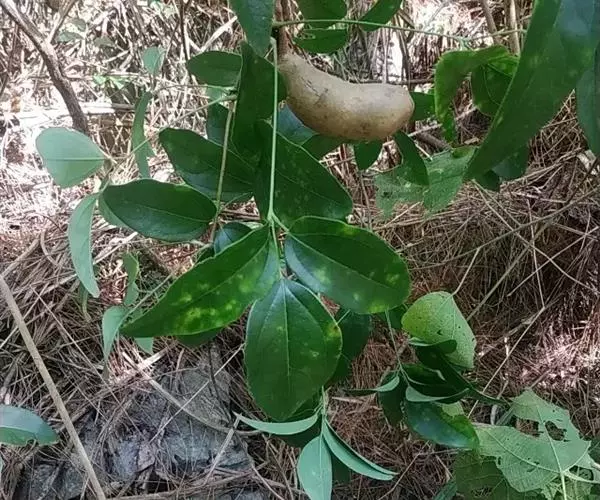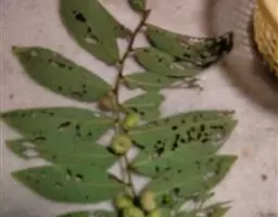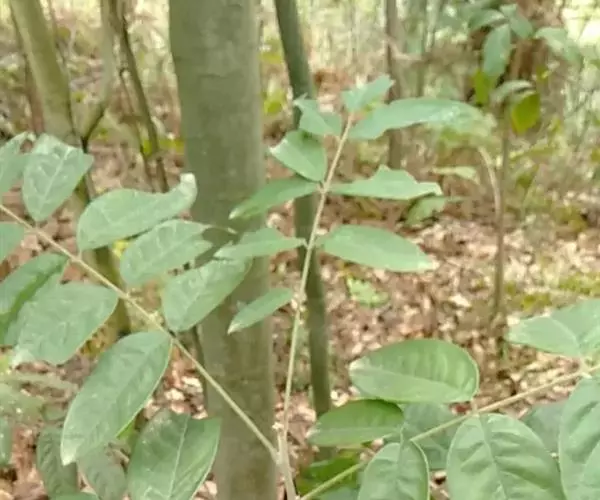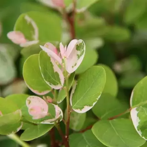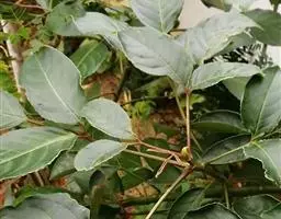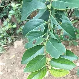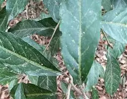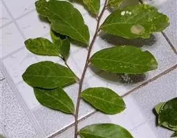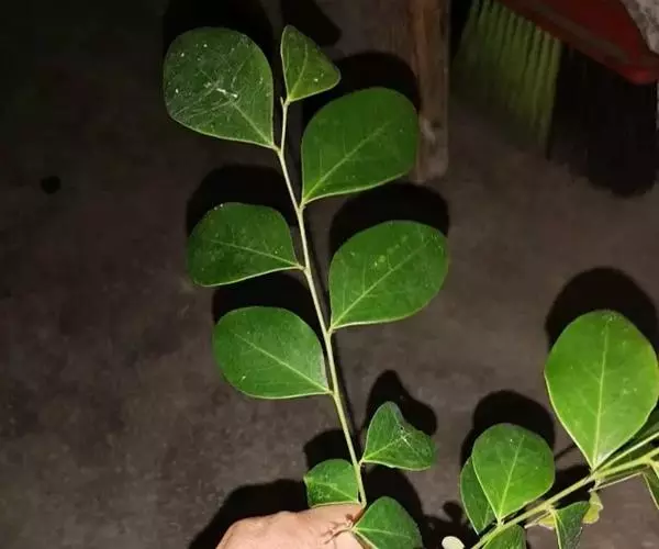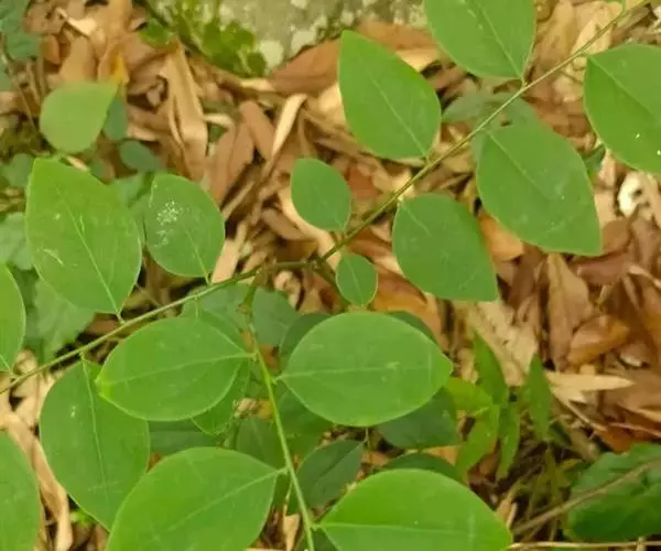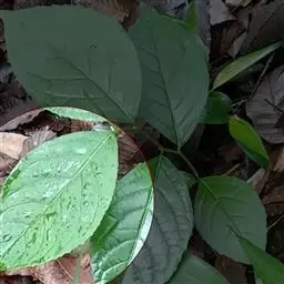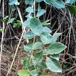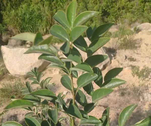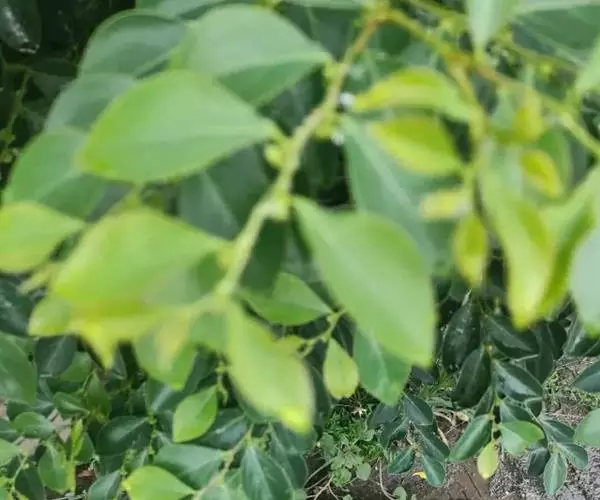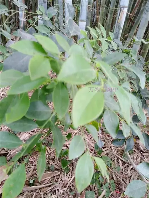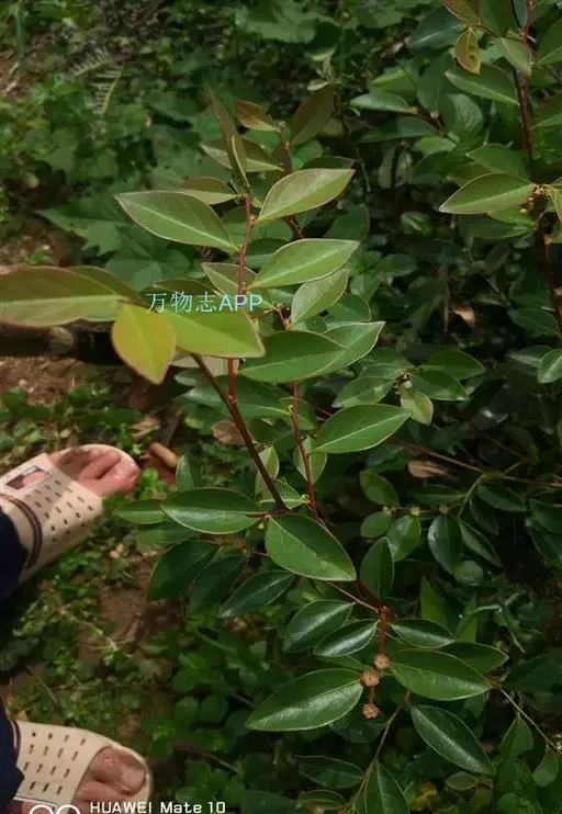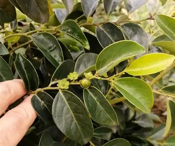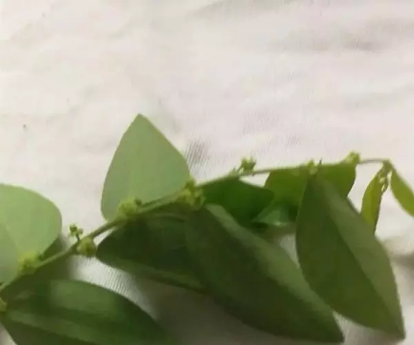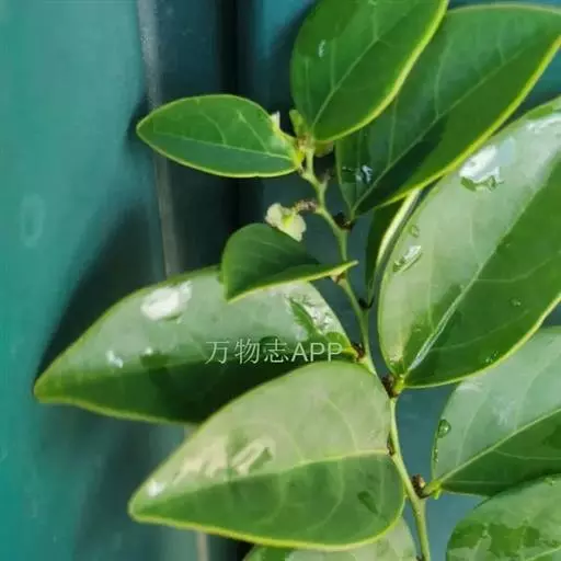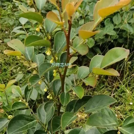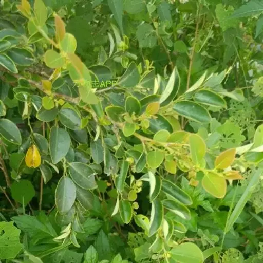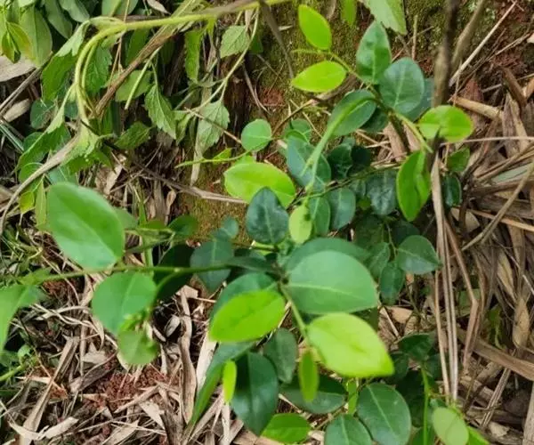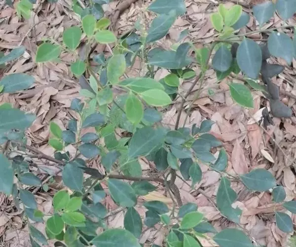 枝常呈紫红色,小枝灰绿色,无毛。叶互生,单叶,具短柄;叶片革质,卵形或宽卵形,长3—6厘米,宽2—3.5厘米,端钝或急尖,全缘,上面有虫蚀斑纹,下面灰白色,具细点,托叶三角状披针形。枝及叶干后变为黑色。气微,味淡微涩。