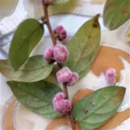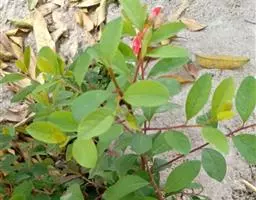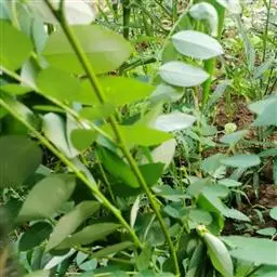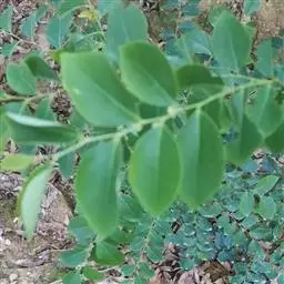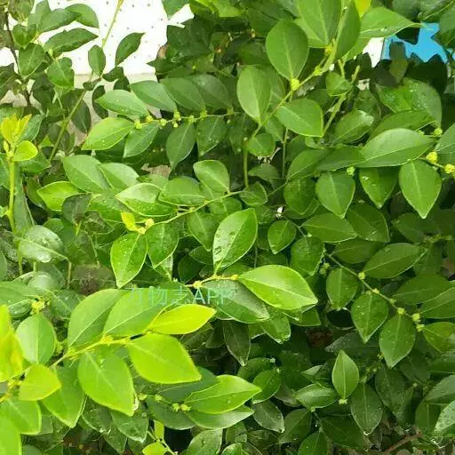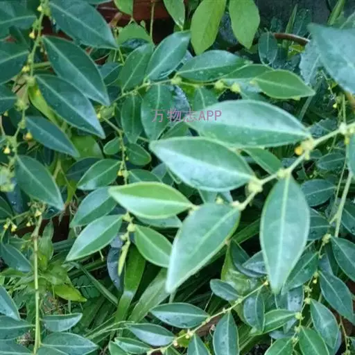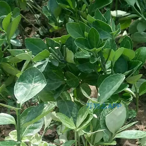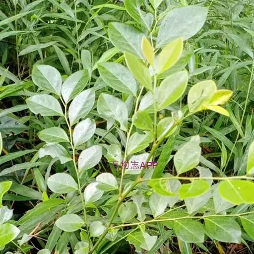 叶:卵形至卵状披针形,长2.5-4厘米,两端均钝,。上面深绿色,秃净,背面粉绿。