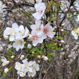伞形花序,具花4-6朵,无总梗,集生在小枝顶端,直径5-7厘米;花梗细长,1.5-4厘米,无毛;苞片膜质,线状披针形,边缘具有腺齿,无毛,早落;花直径3-3.5厘米;萼筒外面无毛;萼片披针形,先端渐尖,全缘,长5-7毫米,外面无毛,内面被绒毛,长于萼筒;花瓣倒卵形,长2-2.5厘米,先端圆钝,基部有短爪,白色;雄蕊15-20,长短不齐,约等于花瓣之半;花柱5或4,基部有长柔毛,较雄蕊长。