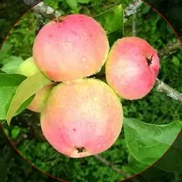 西藏昌都地区的山荆子,果实有长椭圆形、倒卵圆形或圆柱形3个类型,单果重1.25克,鲜红色,脱萼,有光泽,果柄长1.9~3.9厘米,紫红色,9月下旬成熟。