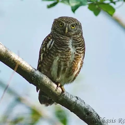 横斑腹小鸮:是鸱鸮科、小鸮属的一种鸟类。体长20厘米左右。面盘不明显,没有耳羽簇,皱领也不显著。…