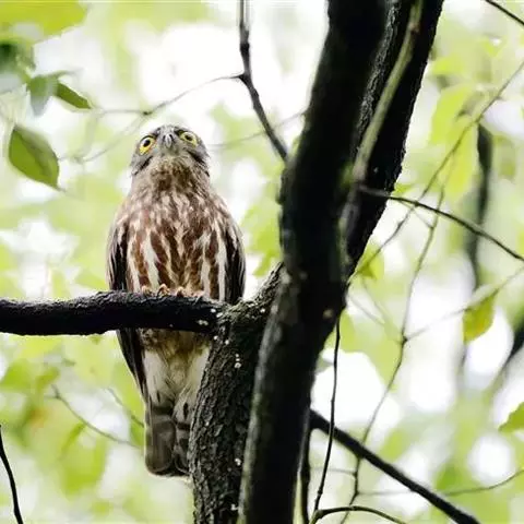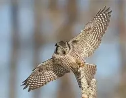 鬼鸮 大多单独活动,没有迁徙行为,但秋冬季也常常游荡到低海拔地区的森林中,也喜欢到人家附近活动。由于它的叫声多变,如吹笛一般,每隔几秒钟就重复一次,并且不断地交替变化,所以给人一种阴森可怕的感觉,因此得名。它的飞行快而直,稍呈波浪形飞行。主要以鼠类为食。也食昆虫、小鸟和蛙类等。捕食方式可以在飞行中猎食,也可以栖息于树上,等待猎物出现时才突然袭击。