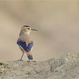 黑尾地鸦:体羽沙褐色,额、头顶以至后颈呈发金属紫蓝辉的黑色。头侧乳黄色。整个背面,包括两肩葡萄褐色。…