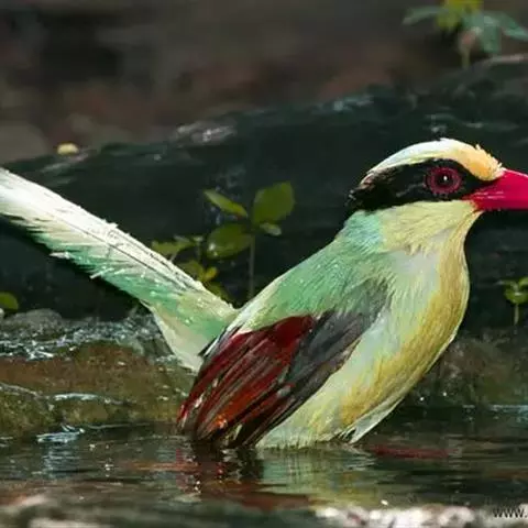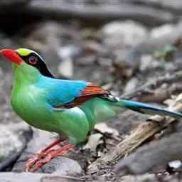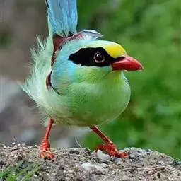 蓝绿鹊:中型鸟类,共有5个亚种。体长36-38厘米。尾长,嘴、脚红色。通体羽色主要为草绿色,…