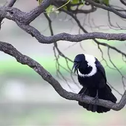 白颈鸦:除颈背和胸有一白圈外,其余体羽全黑。 成鸟的后头、翕的上部延伸至上胸白色,这些白羽基部灰色,…