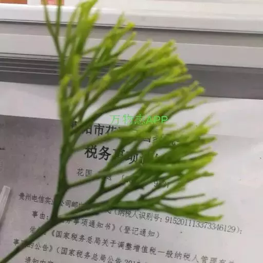 松叶蕨科,松叶蕨属。又称松叶兰。为附生在树干或岩石上的多年生草本植物。有匍匐的地下茎,呈2叉分枝,仅有毛状吸收构造和假根; 地上茎直立或下垂,高15—80厘米,绿色,下部粗约2—3毫米,向上部多回2叉分枝,小枝三棱形;叶退化,极小;孢子叶阔卵圆形,二叉,孢子囊球形,蒴果状,生于叶腋,三囊纵裂,孢子同形。分布于我国台湾、广东、广西、贵州、云南、四川、江苏、浙江;亚热带其他地区也有分布。附生在海拔200—2000米的原生林内。分株繁殖。常见栽培于热带地区荫棚下及温带地区的温室内。性喜温暖、潮湿及半阴的环境。用苔藓、蕨根和树皮块等物栽植于多孔花盆或木筏上。冬季在温室内栽培可稍干,但仍需较高的空气湿度;越冬温度不低于15℃。松叶蕨枝条细长。全株供药用。为古代孑遗种。